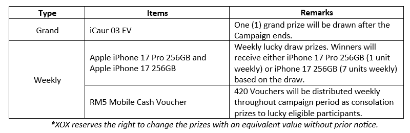 · Your XOX subscription must remain active during the campaign period, lucky draw process, and prize collection stage.