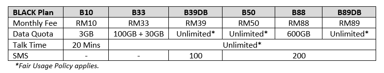 We have several BLACK plans for you to choose from. Please refer to the table below: