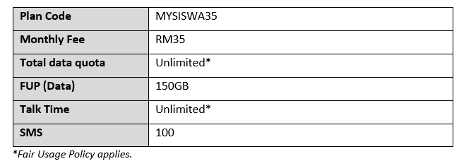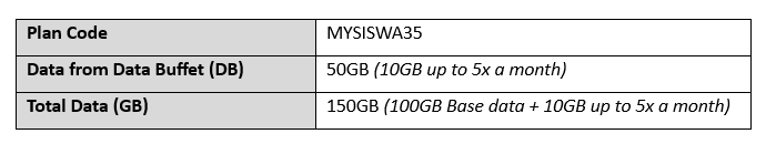 7. MySISWA Data Plan is a Data Buffet Plan (DB Plan) that is subject to the FUP quota of 150GB. Upon reaching the FUP limit, the speed will throttle to 512Kbps.