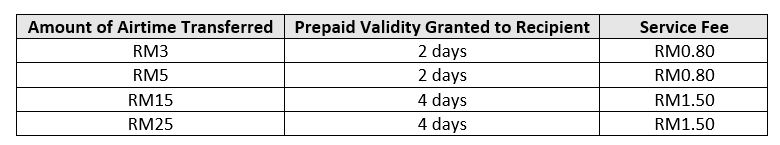 22. A top-up of RM1.00 is equivalent to RM1.00 prepaid credit (Airtime) with ONE (1) day of validity under the Subscriber’s Account. Non-Malaysian Subscribers will be subjected to 6% SST.